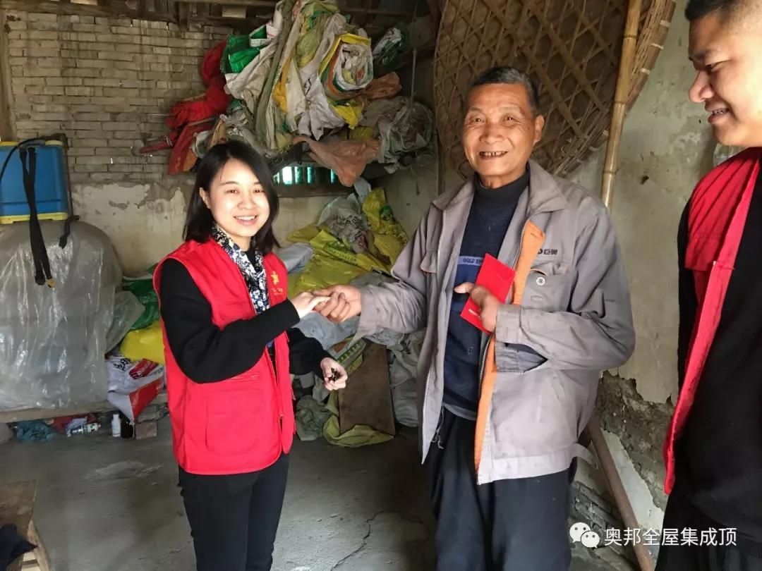1月24日下午,奧邦黨支部書記嚴志慧女士、黨員奧邦執行副總許燁蕓女士、黨員奧邦營銷副總張波先生、黨員奧邦商學院陳云飛與永慶村書記一起看望永慶村貧困老黨員許福俊,送上禮品和慰問金,并仔細詢問老人的身體狀況和生活情況。
