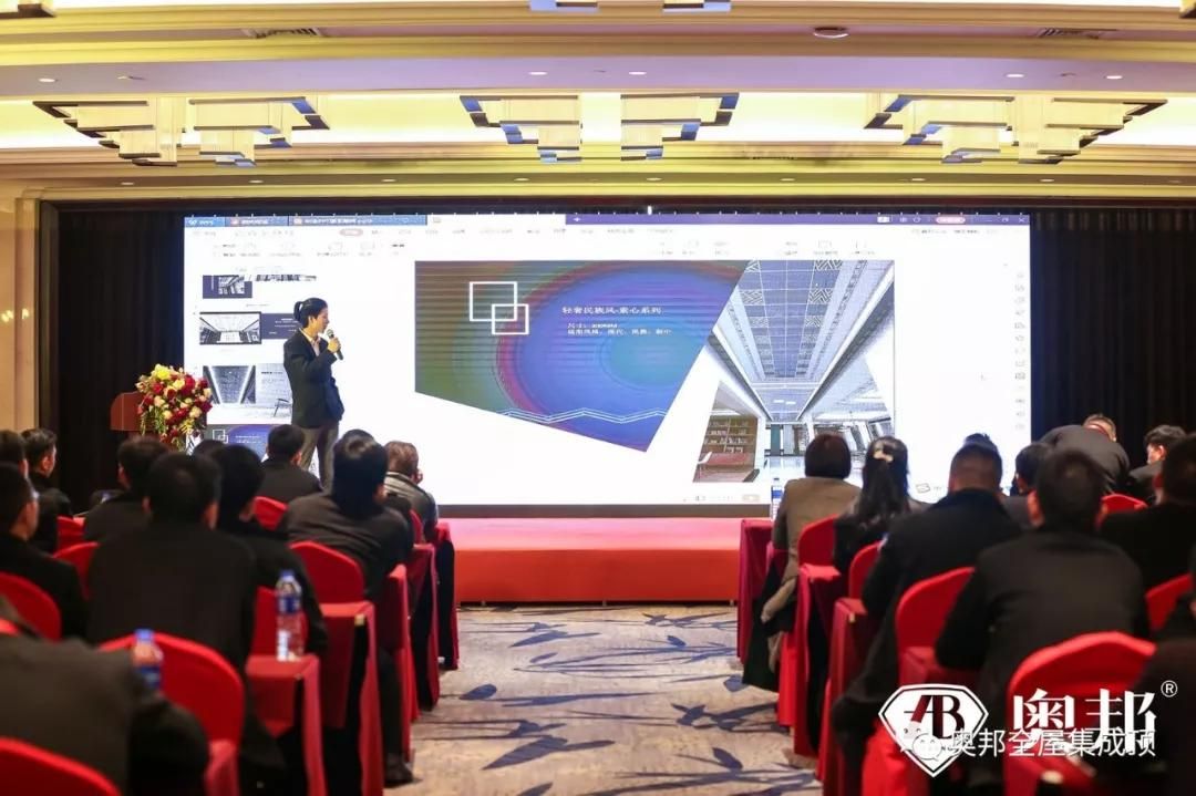 奧邦研發(fā)部部長于治平先生從集成吊頂、集成墻面、電器三大模塊,闡述奧邦新升級產(chǎn)品的優(yōu)勢,為奧邦經(jīng)銷商家人2019新征程增加信心。